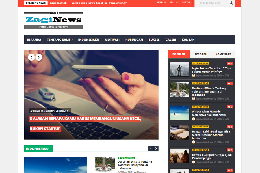 Zagi Nanank ZagiNews - POT00012 01 Juli 2016 Mimin 7319 Kali Dilihat 0 Komentar [GRATIS] - Template gratis dari Zagi Nanank diberi nama ZagiNews. Kode Produk POT00012 Nama ZagiNews Developer Zagi Nanank Untuk PopojiCMS.v.2.x.x Fitur Home, Pages, Category, Post, Contact, Gallery, 404 Harga GRATIS Demo Unduh Tags : Store, Popojicms, Template, Free Tampilan Baru Website PopojiCMS PoDev Paramount - POT00013 Tinggalkan Komentar Submit Komentar Post Terkait 10 Skill yang Kamu Perlukan untuk Menjadi Front-End Developer Rilis File Manager Baru Adara Kin Agency - POT00035 Adara Pemandu - POT00034 Adara Alone - POT00033