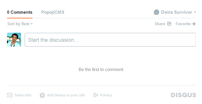 Banyak keunggulan dengan menggunakan Disqus. Tapi pada postingan ini kita akan membahas cara memasangnya saja pada PopojiCMS. Tak perlu panjang lebar lagi, berikut cara memasang Disqus secara mudah dan setahap demi setahap. Semoga bermanfaat.