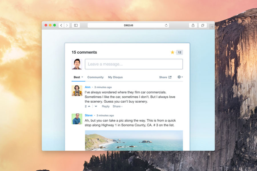 Untuk sistem komentar di blog, Disqus menjadi alternatif layanan komentar dari sistem komentar bawaan blog itu sendiri. Melalui Disqus, komentar-komentar dari para pengguna blog dapat difasilitasi dengan lebih baik. Selain itu, Disqus juga bisa dihubungkan dengan akun si pengguna di berbagai situs jejaring sosial seperti Facebook, Twitter, Gravatar, maupun situs-situs pendukung seperti Seesmic, dan lain sebagainya. Dengan menghubungkan Disqus dan akun jejaring sosial, maka komentar-komentar yang ditampilkan di Disqus akan secara otomatis muncul di akun jejaring sosial si pengguna tersebut.